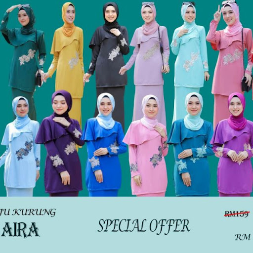 Mengapa: Baju Kurung Aira memiliki desain yang simpel namun memukau. Warna-warnanya yang lembut seperti putih dan krem memberi kesan yang elegan dan anggun. Baju ini cocok dipakai untuk berbagai kesempatan dari formal hingga acara kasual.